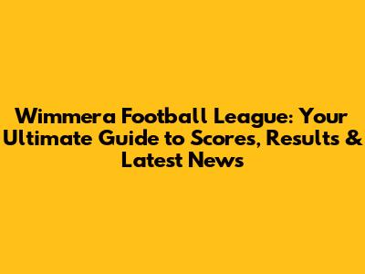 Wimmera Football League: Scores, Results & Latest News