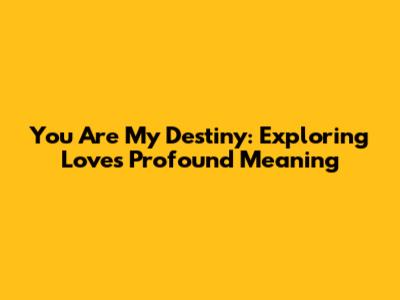 You Are My Destiny: Love's Ultimate Meaning