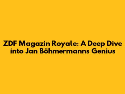Hey guys! Ever found yourselves glued to the screen, laughing one minute and pondering the state of the world the next? If you're nodding, chances are you've stumbled upon ZDF Magazin Royale, the brainchild of the one and only Jan Böhmermann. This isn't just your run-of-the-mill late-night show; it's a satirical powerhouse, a cultural phenomenon, and a masterclass in how to make serious topics engaging. Today, we're diving deep into what makes ZDF Magazin Royale tick, exploring its impact, and why it's a must-watch for anyone wanting a dose of smart humor and thought-provoking commentary. We will also touch upon some keywords like Lubach Vlog, Lubach Show, Lubach Youtube, Oliver Lubach, Lubach Videos, and Lubach Latest, understanding how the show's format and style might resonate with fans of other satirical programs.