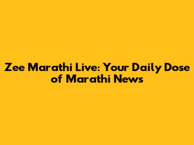 Zee Marathi Live: Your Daily Dose Of Marathi News