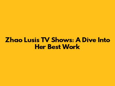 Zhao Lusi's TV Shows: A Dive Into Her Best Work